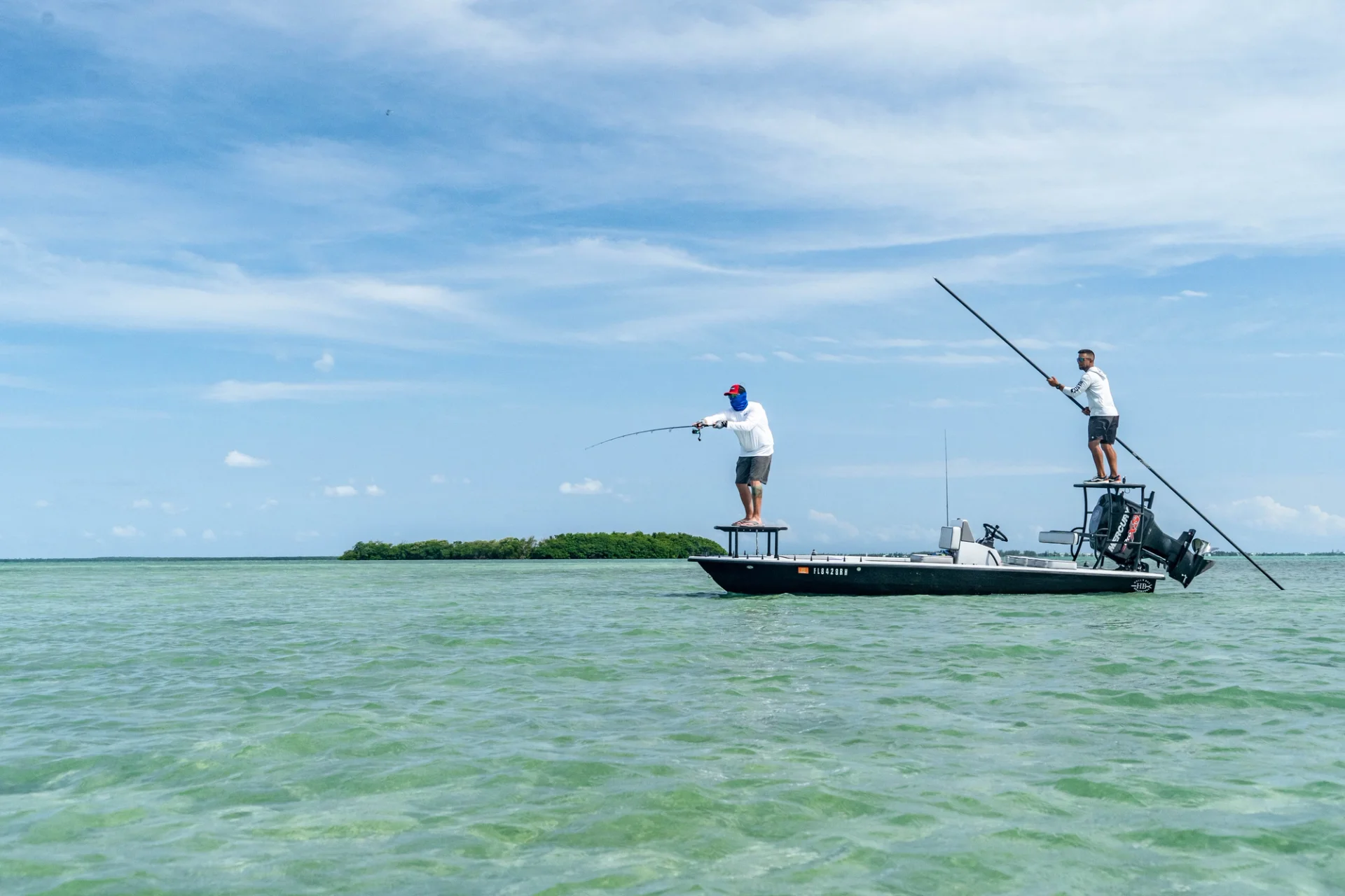 The standard flats fare — a 7- to 7-6 medium heavy spinning outfit — launches these baits well, but if you’re handy with a baitcaster, you’ll find the efficiency allows you to make more casts in a day’s duration. Either way, you’ll want to make sure you’re properly equipped for long casts and big-fish battles, so spool with 30- to 50-pound TUFLINE 4ORCE braid and add 3 feet of 30-pound TUFLINE XD fluorocarbon leader.
