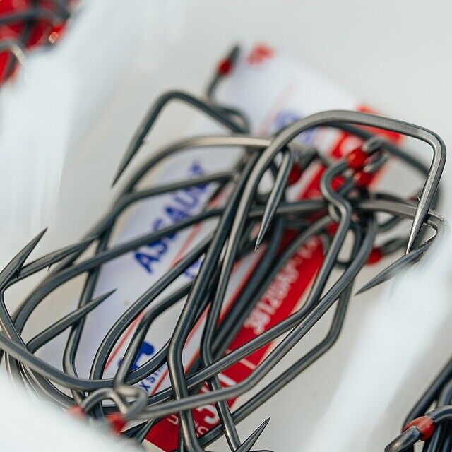 Mustad Assault Wide Gap Hook are built for landing lunkers. For versatile applications, these bass hooks are made for high hook-up ratios and secured hook-sets on big fish. The Z-bend and epoxy at the eye holds and protects soft plastics, perfect for wide gap hook applications like Texas and Carolina rigs, while also great when flipping. Mustad’s new Tak-bend places the point above the eye and at a more level angle with the bait, making the lure flush with the point and improving hook-sets compared to traditional bends. The aggressive bend gets plastic out of the way on a bite for quick penetration while also preserving strength and integrity when fish try to throw the hook. With Mustad’s AlphaPoint® hook point technology, precision fishing takes advantage of the slimmer, ridiculously sharp point combined with the durability anglers expect from Mustad. The nano-thin TitanX finish with a sleek gun-metal look supports the sharpness of the hook and the smoothness maximizes penetration.