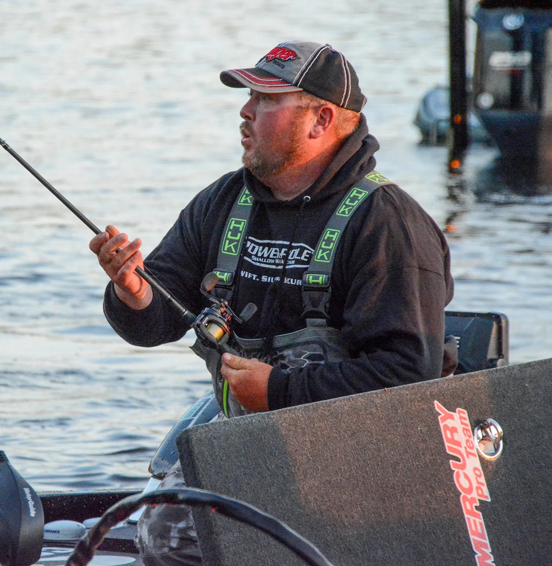 He may use anything from 15- to 30-pound fluorocarbon, depending on water clarity, time of year, etc. and, again, that Mustad Denny Brauer Grip Pin Max Flipping Hook gets the call. One note here, is that when water conditions allow, Powroznik will beef up his line choice to braid.